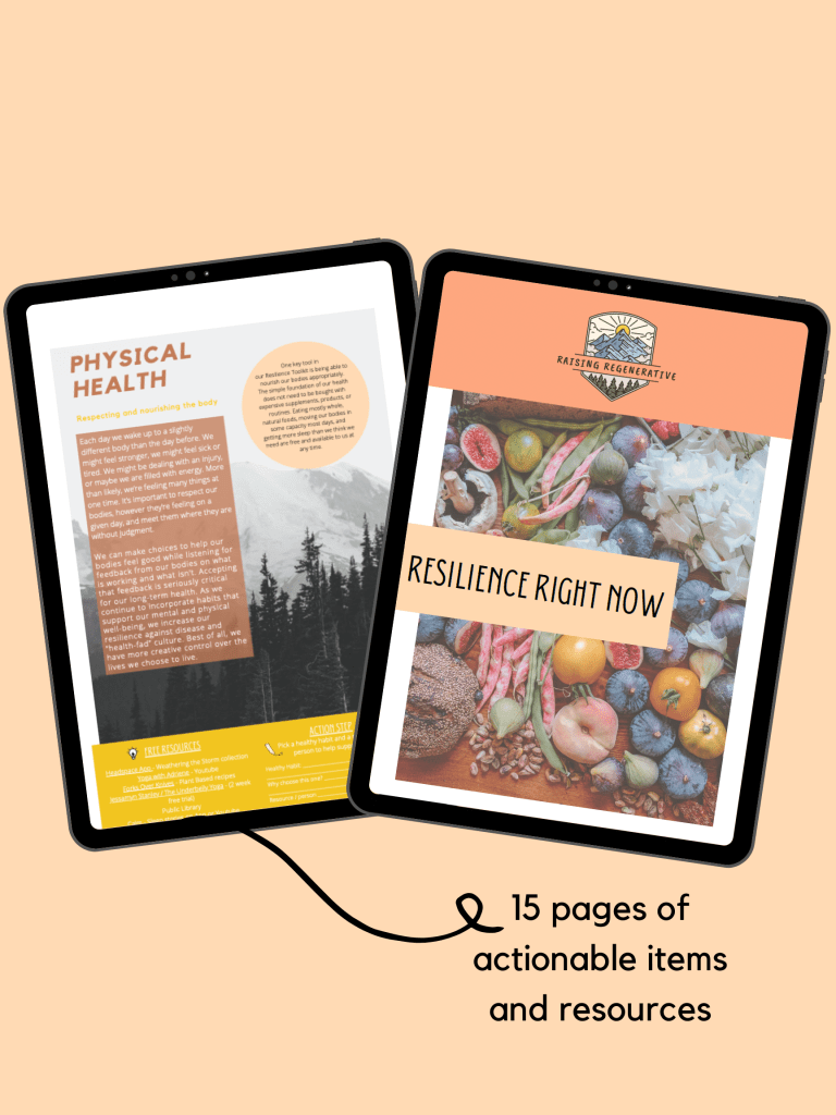 Download the free 15-page Resilience Right Now Workbook and get actionable items and resources to help you incorporate sustainability and climate resilience into your everyday lifestyle.